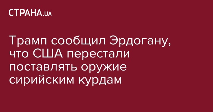 Президент США Дональд Трамп в телефонном разговоре с турецким лидером Реджепом Эрдоганом заявил о прекращении поставок американского оружия сирийским курдам, которых в Турции считают террористами.