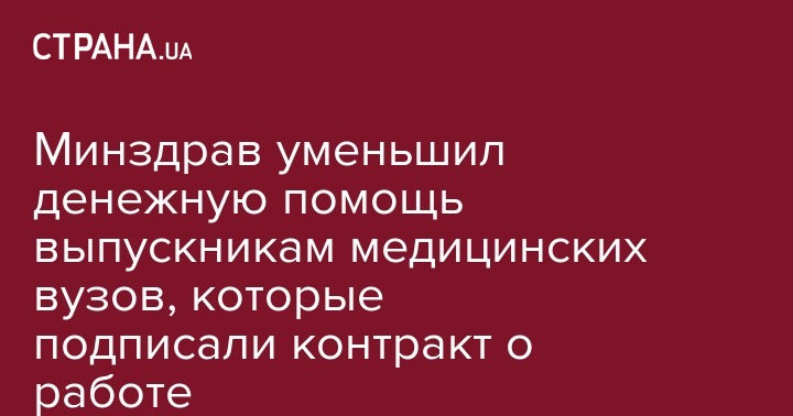 Минздрав уменьшил единовременную адресную денежную помощь для выпускников по направлениям и специальностям медицинского и фармацевтического профилей, которые заключили договор о работе на срок не менее трех лет в текущем году.