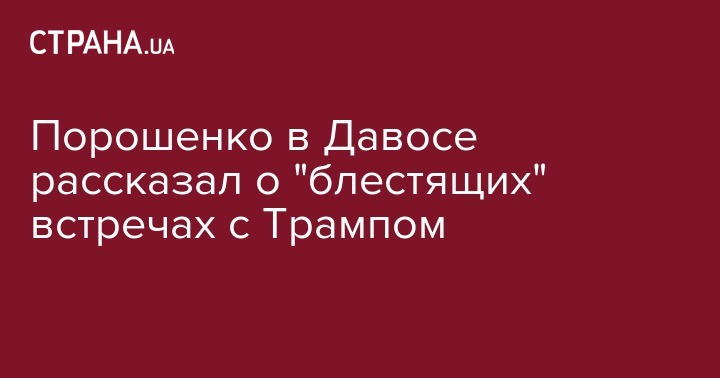 Президент Петр Порошенко в Давосе рассказал о "блестящих" встречах с президентом США Дональдом Трампом.