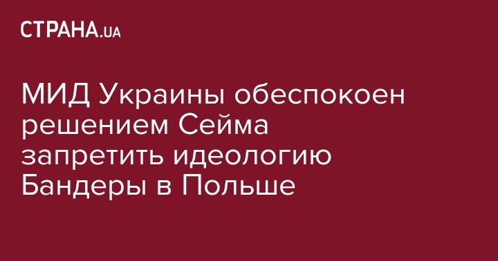 "Министерство иностранных дел Украины глубоко обеспокоено фактом принятия 26 января 2018 года Сеймом Республики Польша законопроекта "О внесении изменений в Закон об Институте национальной памяти - Комиссию по преследованию преступлений против польского народа и некоторые другие законы", - говорится в заявлении украинского внешнеполитического ведомства.