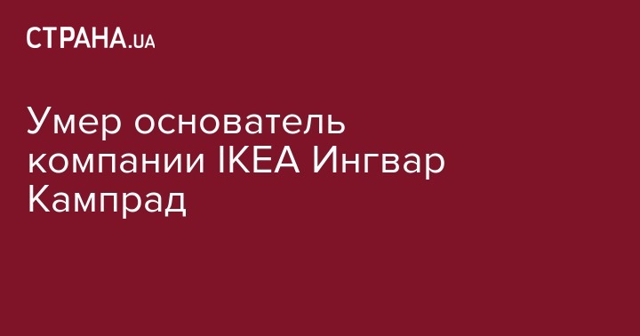 "Ингвар Кампрад спокойно ушел из жизни у себя дома в Смоланд. Ингвара будет очень не хватать, и его семья и сотрудники IKEA по всему миру будут помнить о нем с теплотой", — говорится в сообщении.
