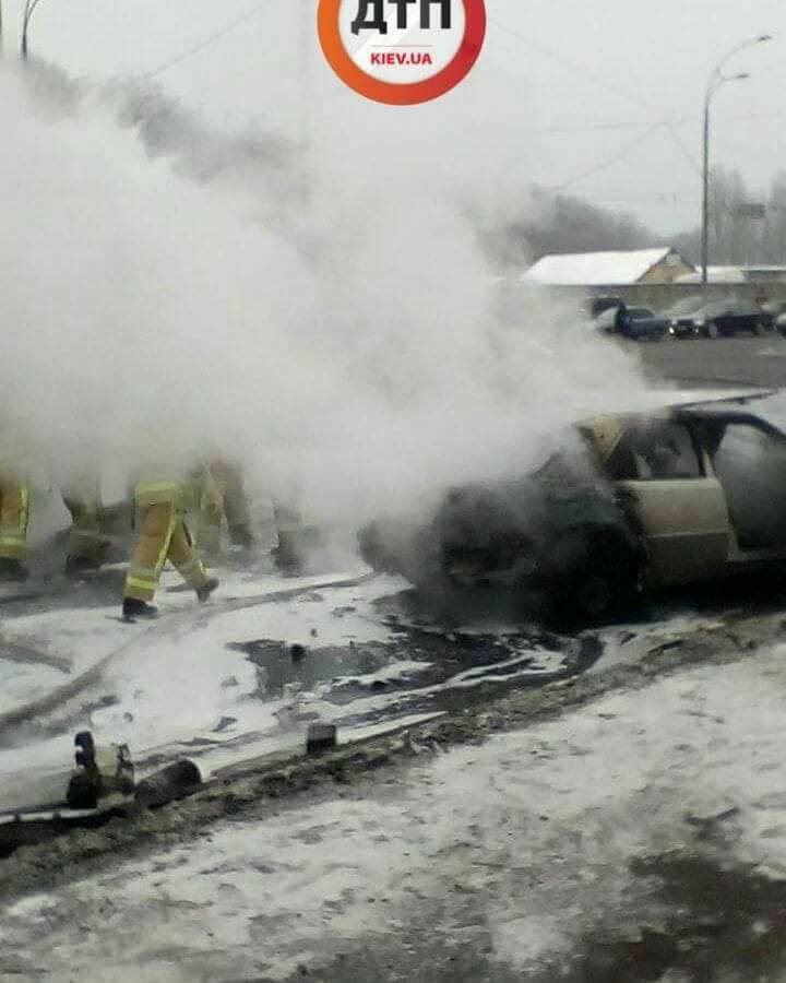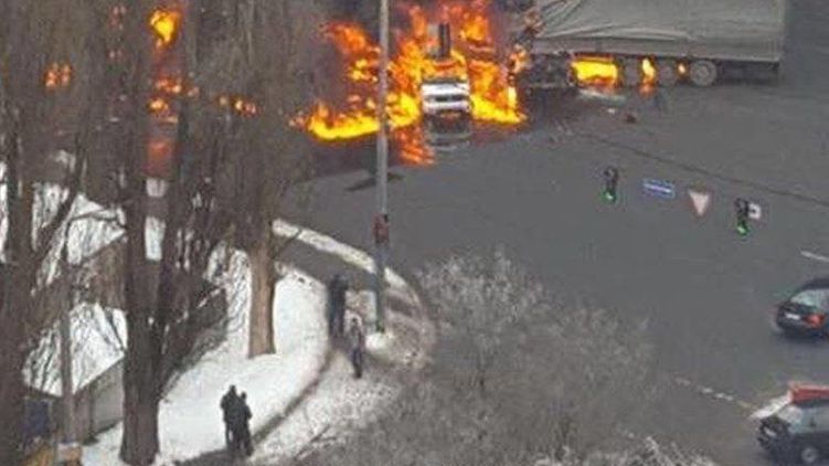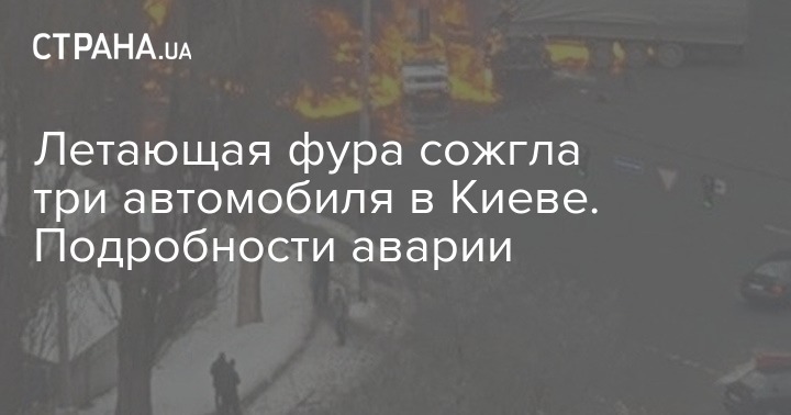 В Киеве 28 января в воскресенье произошло серьезное ДТП. На улице академика Заболотного фура ударилась об отбойник, перелетела через него и загорелась.