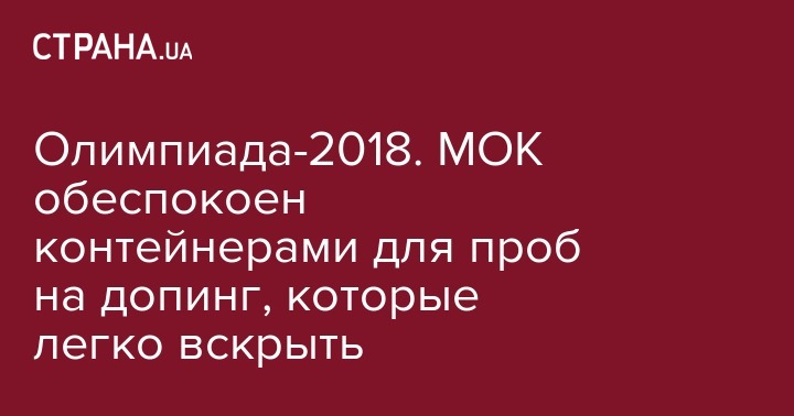 Международный олимпийский комитет (МОК) обеспокоен вопросом возможного открытия новых контейнеров для допинг-проб на Олимпиаде-2018 и призвал Всемирное антидопинговое агентство (WADA) гарантировать их надежность. Об этом говорится в заявлении МОК, передает УНН.