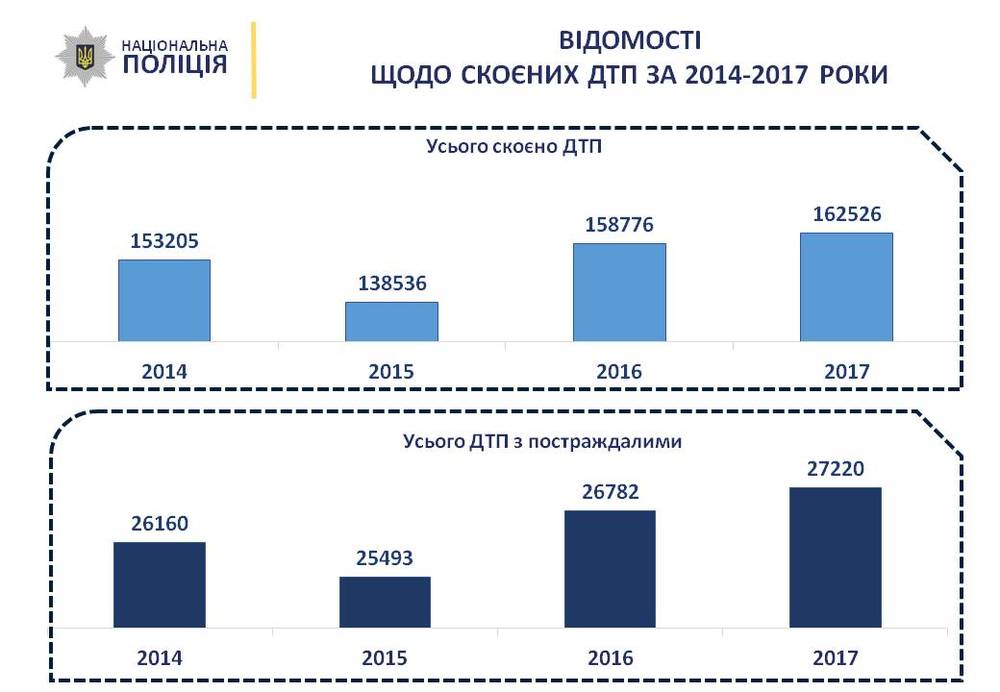 В Украине за 2017 выросло количество ДТП, совершенных в состоянии алкогольного опьянения. Правоохранители зафиксировали более 144 тыс. случаев управления в нетрезвом виде, что на четверть выше показателя за 2016 год.