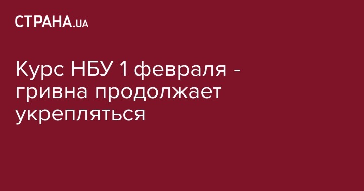 В четверг, 1 февраля, Нацбанк установил официальный курс гривны по отношению к иностранным валютам. По сравнению с предыдущим рабочим днем, доллар и евро еще немного подешевели.