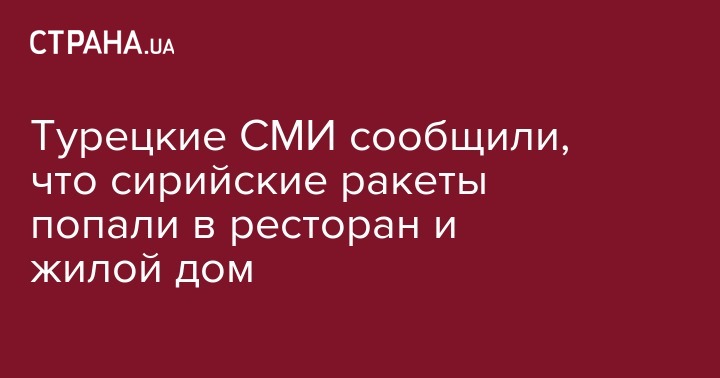 Ракеты, выпущенные с территории Сирии, попали в ресторан и дом в Турции.