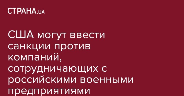 США дали понять, что с высокой долей вероятности введут санкции против компаний, которые сотрудничают с российскими предприятиями военно-промышленного комплекса.
