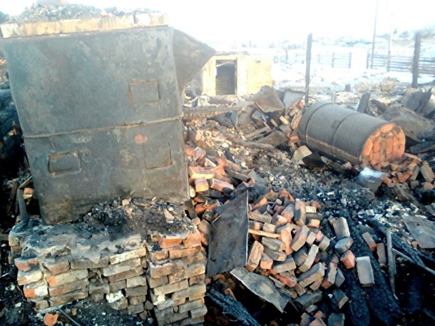В ходе пожара также взорвался газовый баллон, который разрушил дом. Остались только стены.