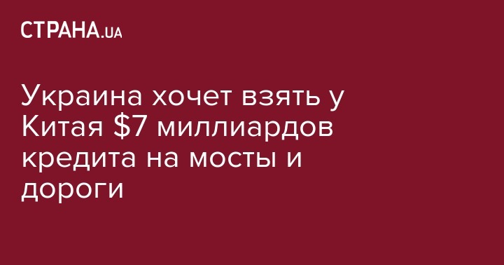 Украина хочет взять у Китая $7 миллиардов кредита на мосты и дороги
