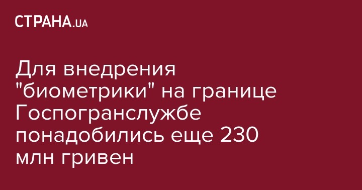 Для окончания внедрения и обеспечения корректного функционирования системы фиксации биометрических данных на пунктах пропуска через границу необходимы еще 232 миллиона гривен.