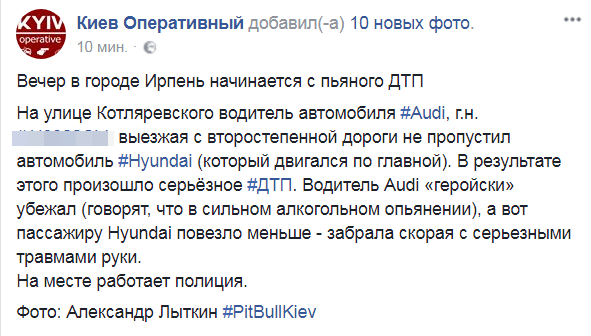 Пьяное пятничное ДТП в Ирпене завершилось бегством одного из участников