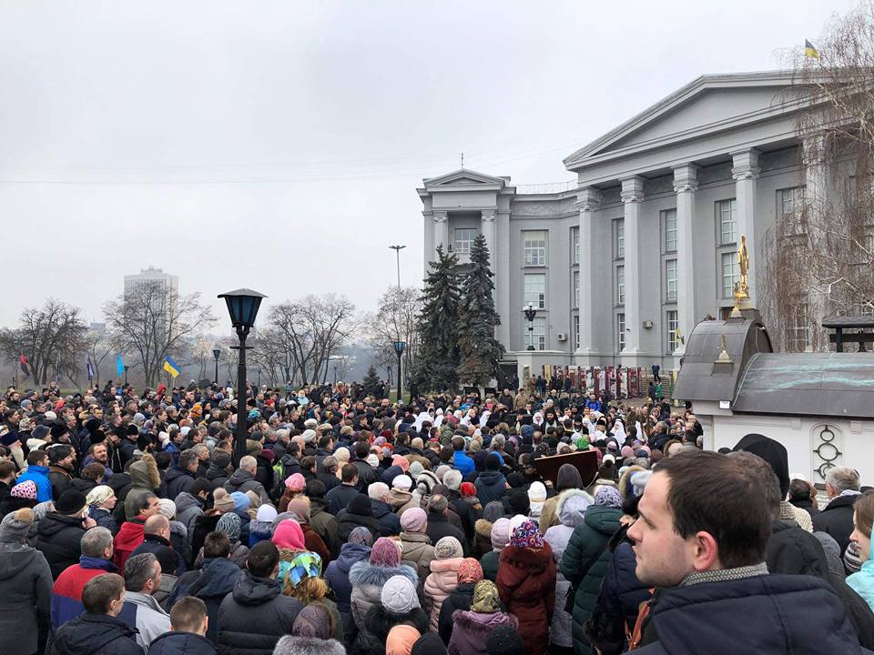 В субботу в Киеве сотни верующих УПЦ пришли к Десятинному монастырю, чтобы защитить храм УПЦ от возможного захвата радикалами. Об этом сообщает Центр информации УПЦ в Facebook.