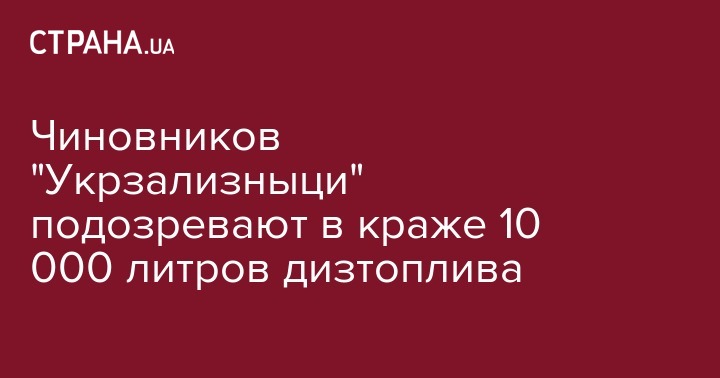 На Закарпатье объявлено о подозрении двум чиновникам "Укрзализныци". Их заподозрили в краже дизтоплива почти на 250 тыс. гривен. Объем хищений составил 10 000 литров.