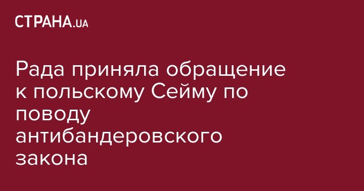 Рада приняла обращение к польскому Сейму по поводу антибандеровского закона