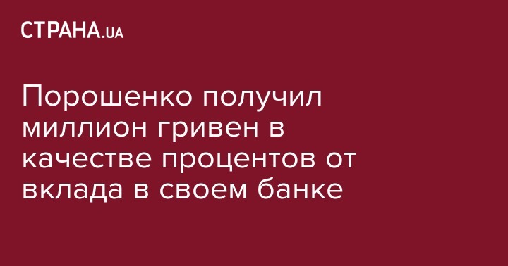 Порошенко получил миллион гривен в качестве процентов от вклада в своем банке