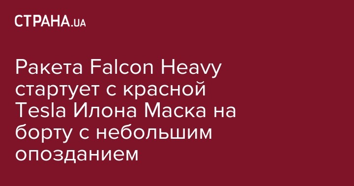 Напомним, старт планировался на 20.30 по киевскому времени, но из-за сильного ветра старт Falcon Heavy перенесли на 22:05 по киевскому  времени. Об этом в twitter сообщает основатель Space X и Tesla Илон Маск.