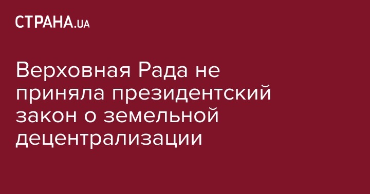 Депутаты Верховной Рады отклонили президентский законопроект о земельной децентрализации.