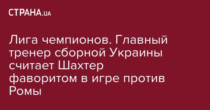 Лига чемпионов. Главный тренер сборной Украины считает Шахтер фаворитом в игре против Ромы
