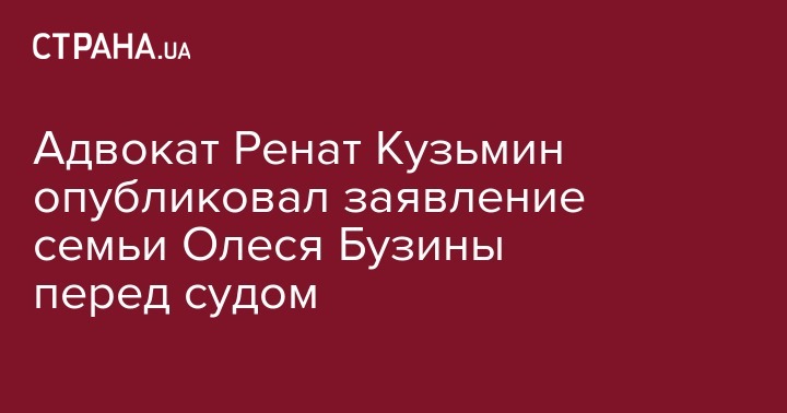 Адвокат Ренат Кузьмин опубликовал заявление семьи Олеся Бузины перед судом