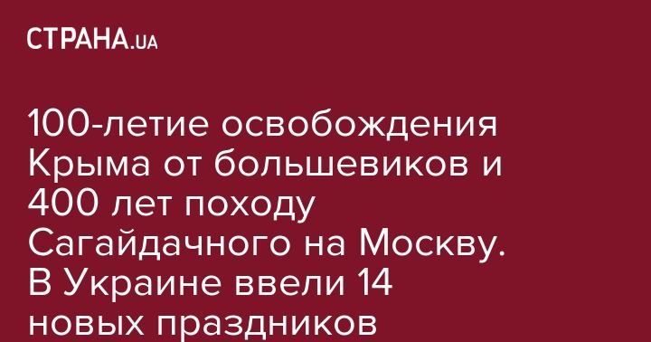 100-летие освобождения Крыма от большевиков и 400 лет походу Сагайдачного на Москву. В Украине ввели 14 новых праздников
