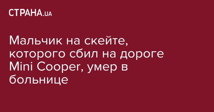 Мальчик на скейте, которого сбил на дороге Mini Cooper, умер в больнице