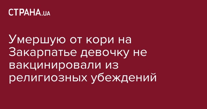 "Пятилетняя девочка с Тячевщины, которая сегодня умерла от кори в Закарпатской областной детской больнице, не была привита. В 2014 году родители написали официальный отказ от вакцинации в связи с религиозными убеждениями. Это семья верующих с Тячевщины, она не стоит на балансе в соцслужбах как неблагополучная", - сказал Галас.