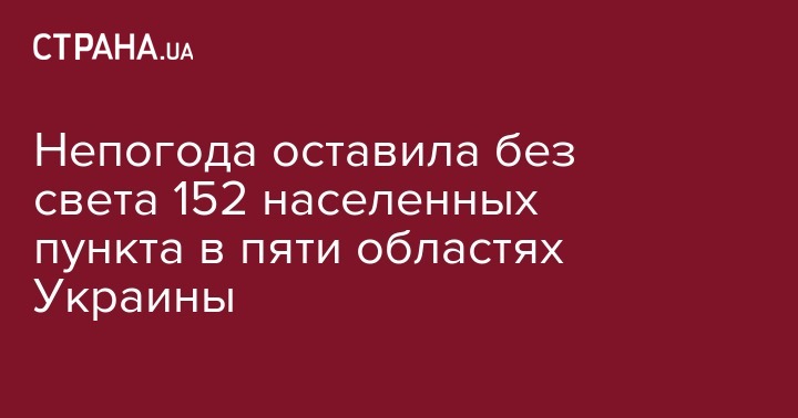 Непогода оставила без света 152 населенных пункта в пяти областях Украины