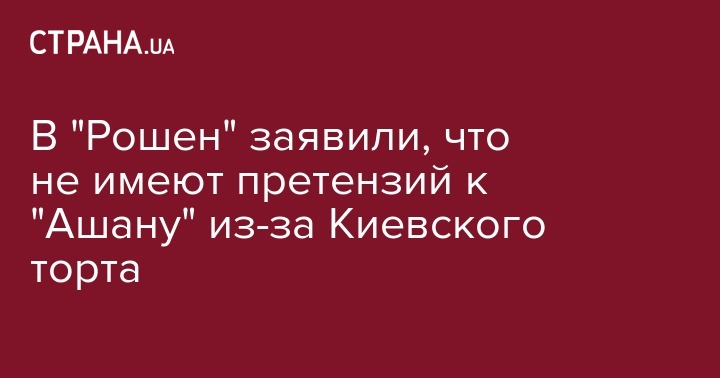 "Корпорация Рошен заявляет, что не имеет претензий к Ашан Украина Гипермаркет по производству продукции под названием Киевский торт, поскольку, как нам известно, последний такого производства не осуществляет", - говорится в сообщении.
