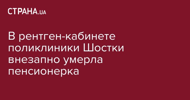 В пятницу, 9 февраля в поликлинике города Шостки Сумской области внезапно умерла пожилая женщина. Трагедия случилась в рентген-кабинете.