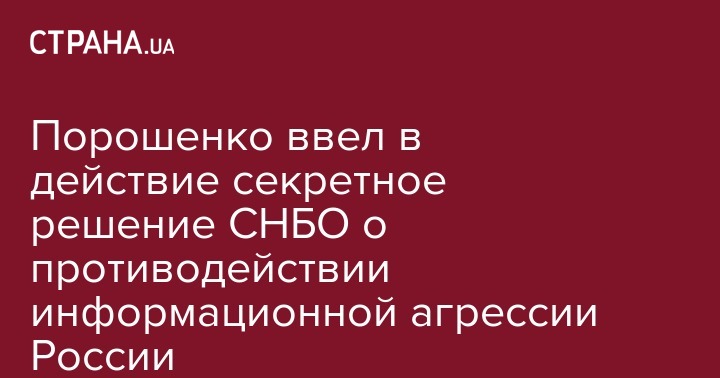 Президент Украины Петр Порошенко ввел в действие решение Совета национальной безопасности и обороны Украины от 26 января 2018 года "О дополнительных мерах по противодействию информационной агрессии Российской Федерации".