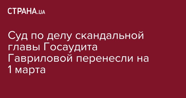 Судебное заседание по апелляционной жалобе председателя Госаудитслужбы Лидии Гавриловой, которую подозревают в незаконном обогащении на сумму 10 миллионов гривен, перенесли на 1 марта.