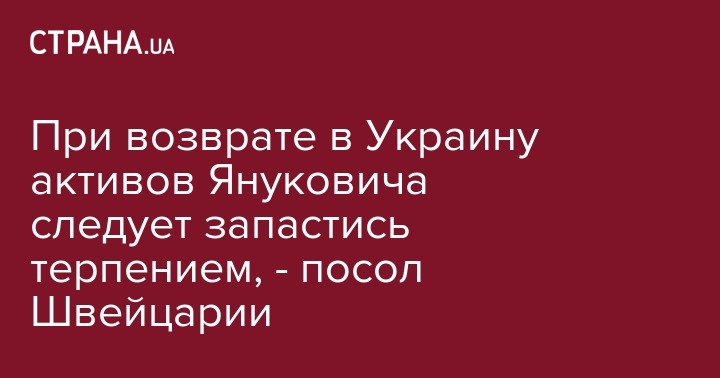 При возврате в Украину активов Януковича следует запастись терпением, - посол Швейцарии