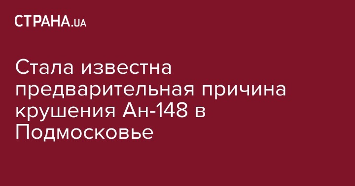 Стала известна предварительная причина крушения Ан-148 в Подмосковье