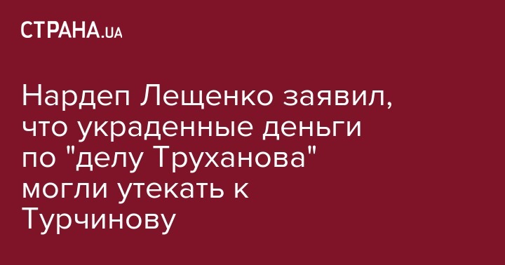 "На днях на меня неофициально вышли люди Труханова с историей, что деньги от этой аферы с заводом "Краян" предназначались не ему, а Турчинову с Дубовым. Не знаю, кто здесь прав. Но что я могу сказать: господин Труханов, мы не знакомы и никогда не общались. Но не верьте тем, кто обещает порешать с НАБУ или повлиять на них через Америку. Если в афере были замешаны названные личности, в ваших интересах дать на них показания. Так будет лучше и вам, и Украине", - написал Лещенко.