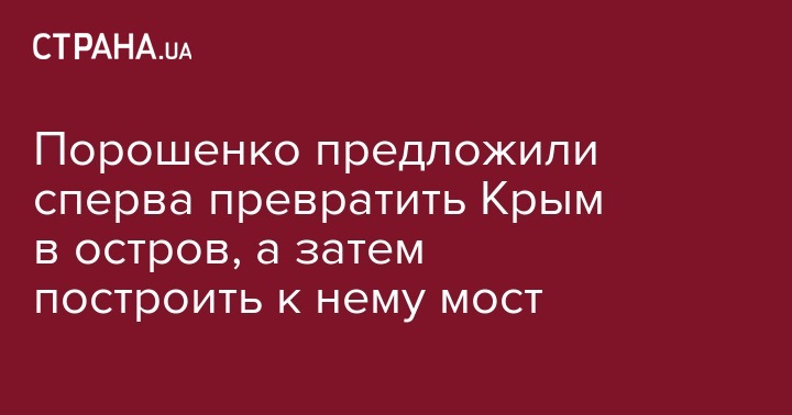 Президенту Украины Петру Порошенко предложили превратить Крым в остров, отделив его от материковой Украины искусственным рвом-каналом. Петиция с таким предложением уже размещена в соответствующем разделе официального интернет-представительства президента Украины. Ее уже поддержали 45 человек из необходимых 25 000.