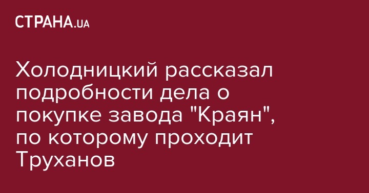 Холодницкий рассказал подробности дела о покупке завода "Краян", по которому проходит Труханов