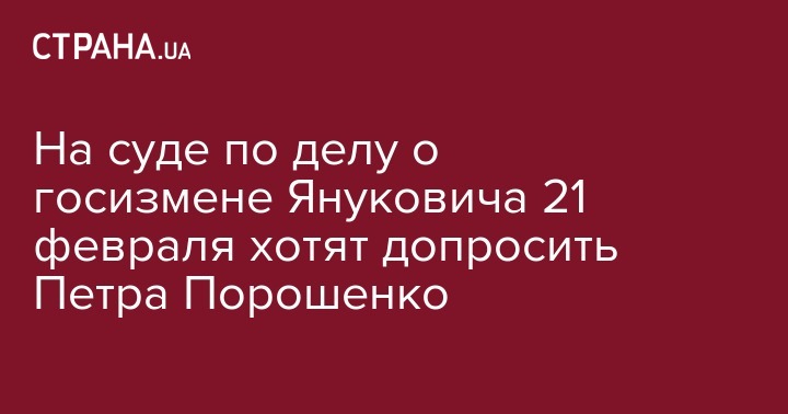 На суде по делу о госизмене Януковича 21 февраля хотят допросить Петра Порошенко