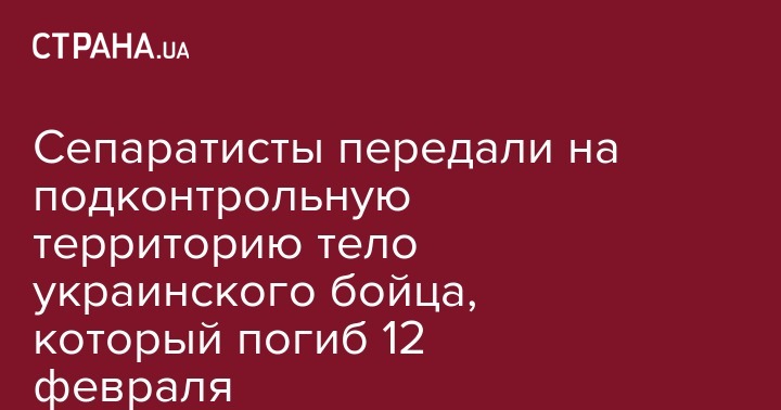 Сепаратисты передали на подконтрольную Украине территорию тело погибшего 12 февраля украинского военнослужащего.