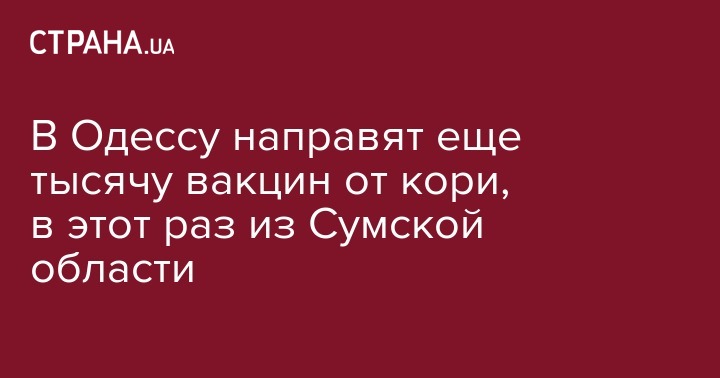 В Одессу направят еще тысячу вакцин от кори, в этот раз из Сумской области