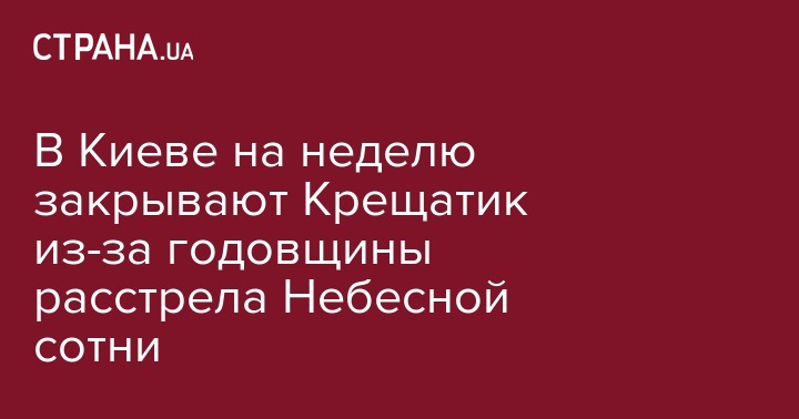В Киеве на неделю закрывают Крещатик из-за годовщины расстрела Небесной сотни