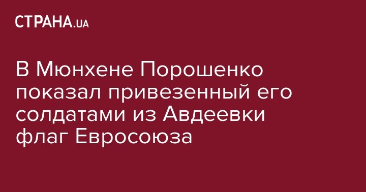 Также во время выступления Порошенко достал флаг Евросоюза из Авдеевки, сказав, что "мои солдаты" спасли его из-под обстрелов как символ того, что граница Европы проходит на Востоке Украины.