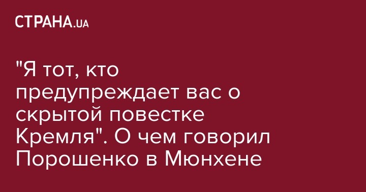 "Я тот, кто предупреждает вас о скрытой повестке Кремля". О чем говорил Порошенко в Мюнхене