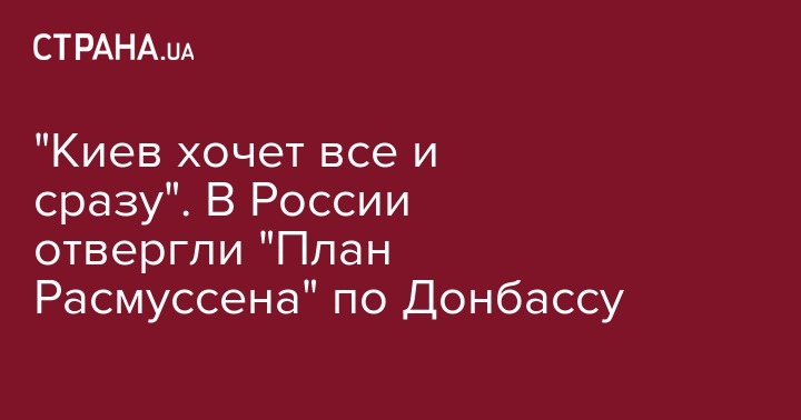 "Киев хочет все и сразу". В России отвергли "План Расмуссена" по Донбассу
