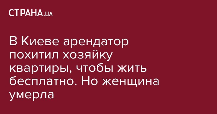 В Киеве мужчина похитил хозяйку квартиры, которую он арендовал, чтобы жить в столице бесплатно. Однако женщина скончалась от заболевания сосудов и теперь похитителя задержали, сообщает прокуратура.