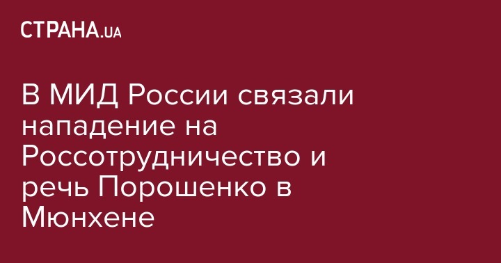 "Вряд ли можно считать случайным совпадением тот факт, что погром в РЦНК произошел сразу же после одиозного выступления президента Украины Петра Порошенко на Международной конференции по вопросам безопасности в Мюнхене, которое изобиловало антироссийскими выпадами и содержало прямой призыв к "борьбе с российским флагом" по всему миру", - заявили в МИД России.