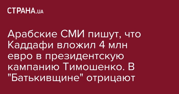 Режим бывшего ливийского лидера Муаммара Каддафи мог финансировать президентскую кампанию Юлии Тимошенко в 2010 году. Об этом сообщили источники арабского издания Asharq Al Awsat в окружении сына бывшего ливийского лидера.