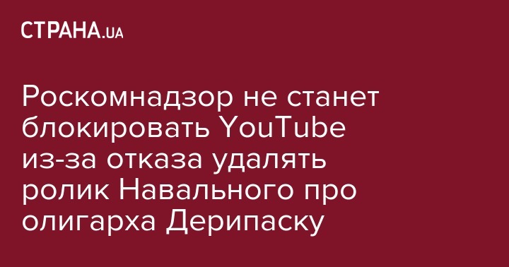 Роскомнадзор не станет блокировать YouTube из-за отказа удалять ролик Навального про олигарха Дерипаску