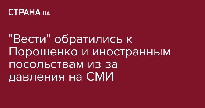 Медиахолдинг "Вести"направил официальное обращение властям Украины и дипломатическим представительствам европейских государств и США в Украине в связи с давлением на из СМИ и недавний захват редакции. Обращение опубликовано на сайте издания.