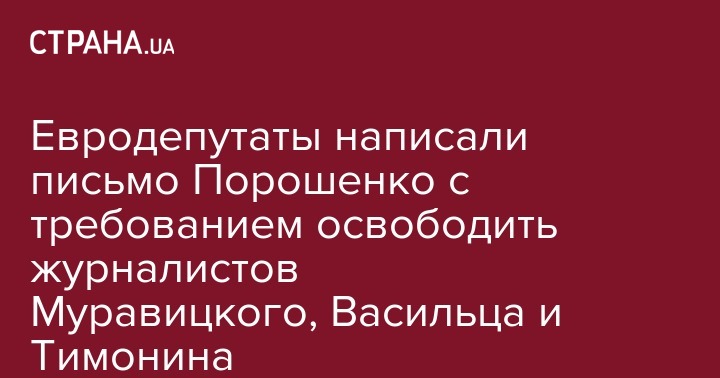 Депутаты Европарламента направили открытое обращение к Президенту Украины, органам власти с требованием срочно освободить журналистов Василия Муравицкого, Дмитрия Васильца и Евгения Тимонина из-под стражи.