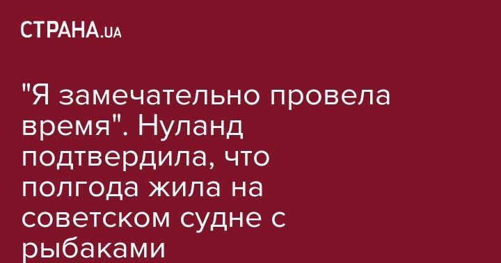 "Я действительно провела шесть месяцев на советском рыболовном траулере в 1984 году. Но эффект от этого был иной - мой интерес к России усилился. Я замечательно провела время. Это великолепный опыт - жить с 80 россиянами на борту и познавать культуру изнутри", - сказал Нуланд.